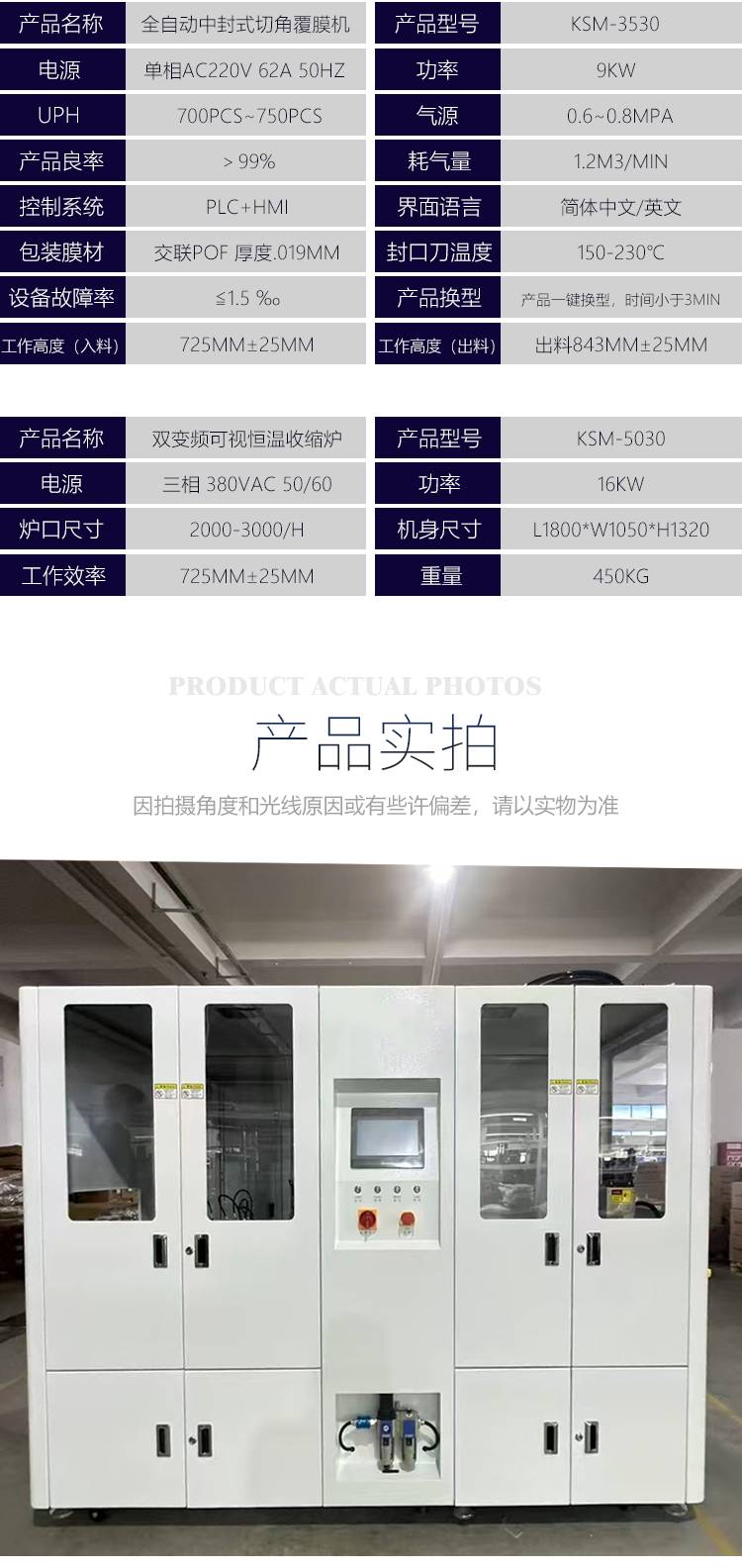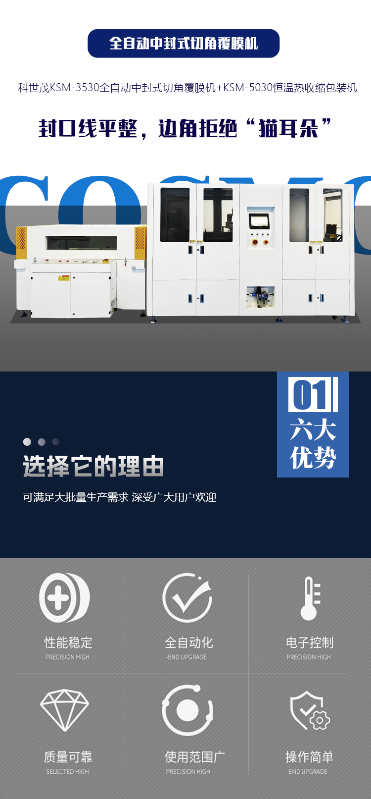 科世茂KSM-3530全自动中封式切角覆膜机+KSM-5030热收缩炉